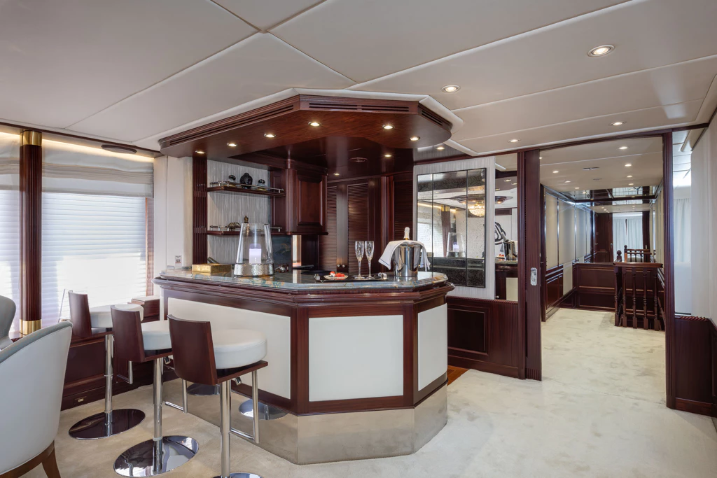 Her exquisite interiors are a harmonious blend of designs from Zuretti, Luxury Projects, and naval architect Stefano Natucci. Further enhanced by a comprehensive 2022 refit, every inch of AKIRA ONE exudes luxury, amplified by the tranquillity of her zero-speed stabilizers.