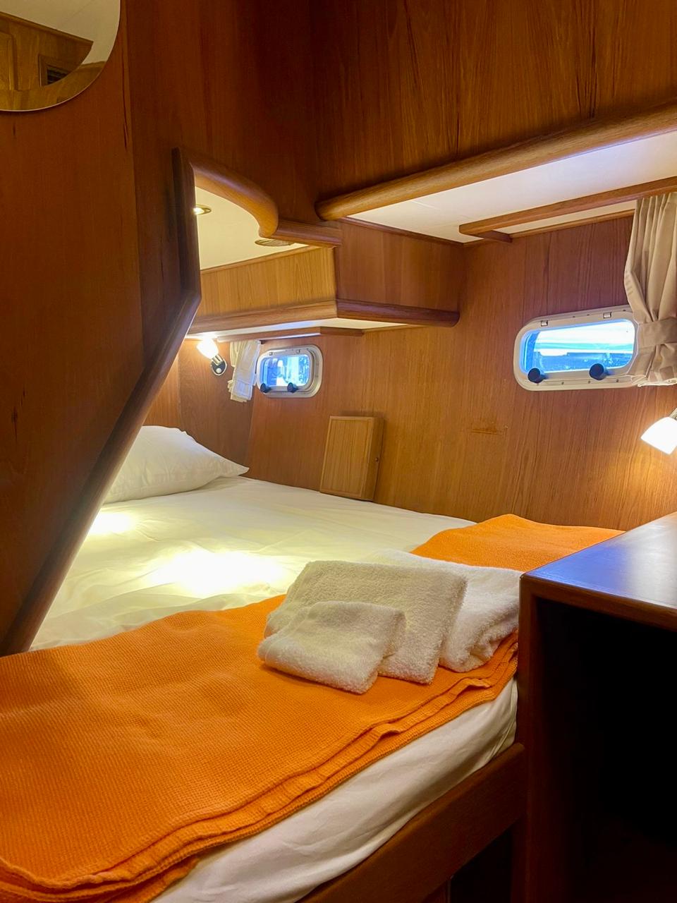 Engines 2 x Perkins 280hp, Generator Whisper 12 kWa, Full set of Raymarine instruments, Fuel Consumption: 50lt/ht at 9 knots, 60lt/hr at 12 knots, max speed 12 knots, A/C, Watermaker, Full teak deck, Boiler, Hydraulic Inox Gangway, Watermaker 160lt/hr, Sink, Oven, Ceramic hob, Dishwasher, Refrigerator, Freezer, 2023 full sand blasting & new antifouling, 2023 new blue color, Stabilizer Bow & Stern, Refit 2021