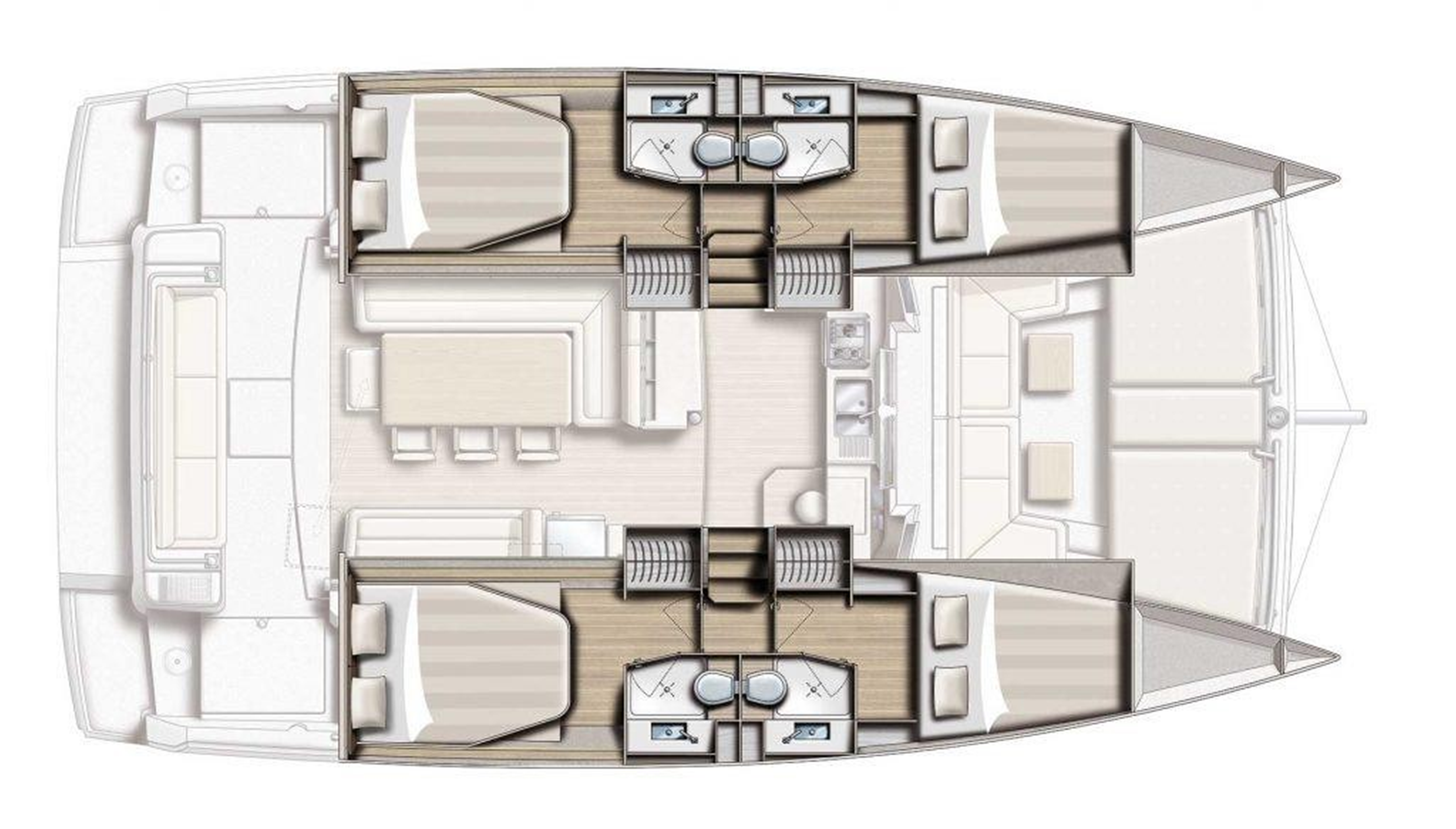 Cabins: 4 Double + 1 Skipper bow cabins