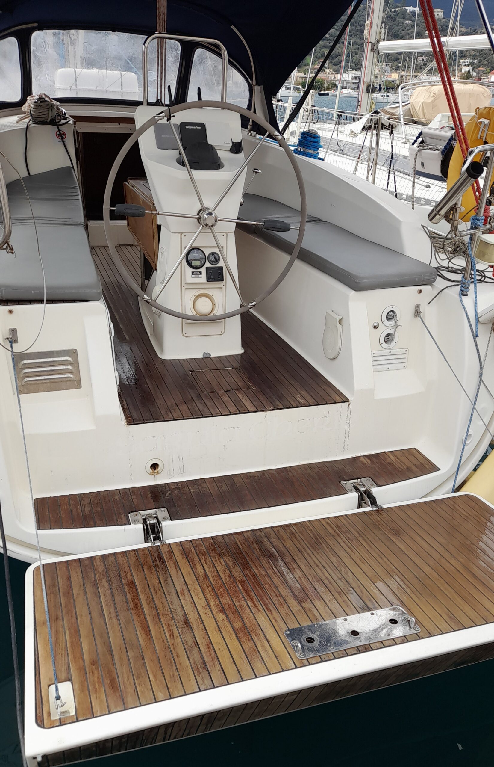 Furling mainsail (2017), Roller Genoa (2017), Engine Volvo Penta 40hp, Full set of Raymarine instruments: Depth Sounder, Speed Log, Autopilot, GPS Plotter Garmin GPS Map 557, Compass Plastimo, VHF ICOM Marine, Electric windlass, Bowthruster, Teak Deck, Bathing platform