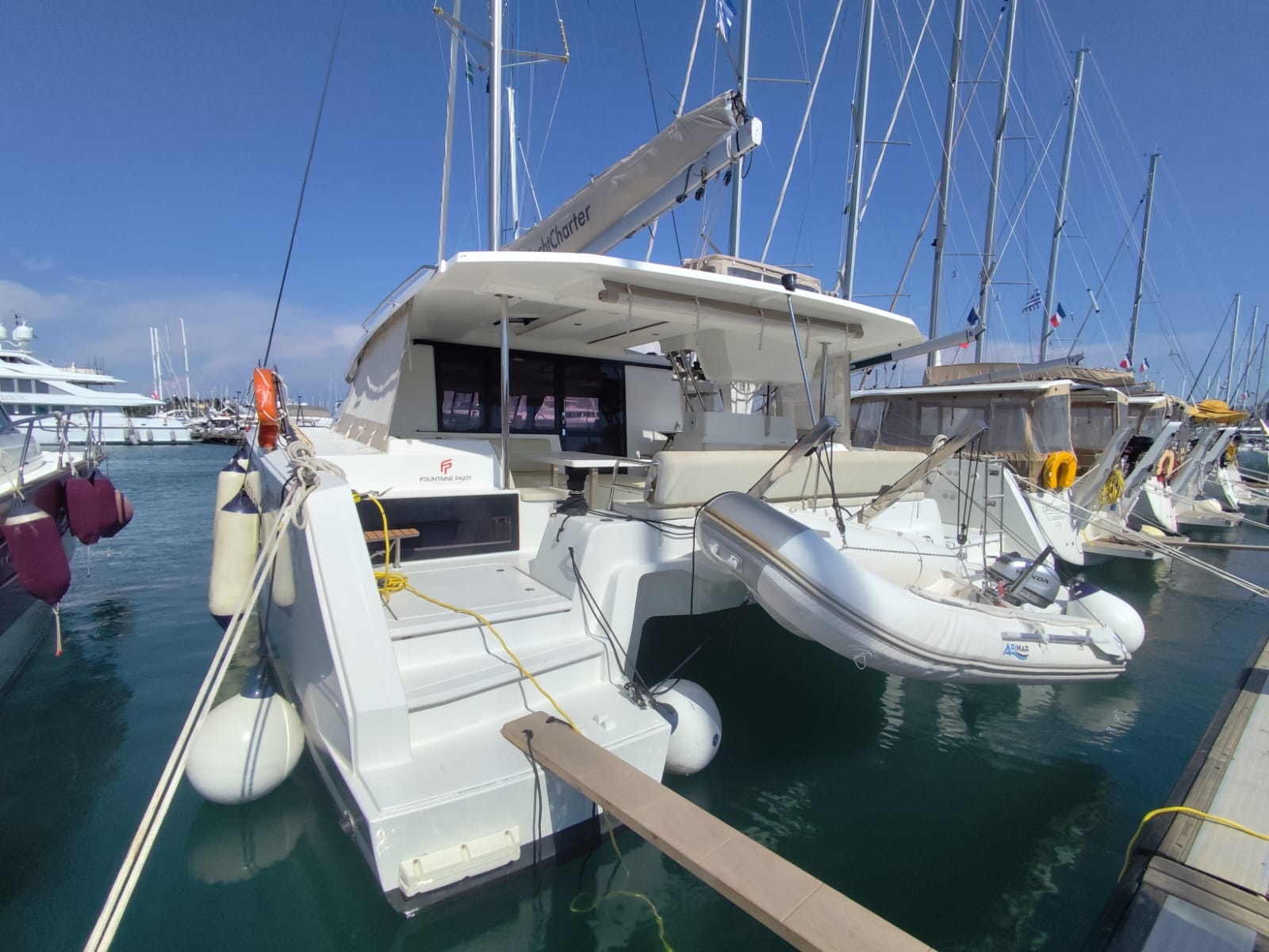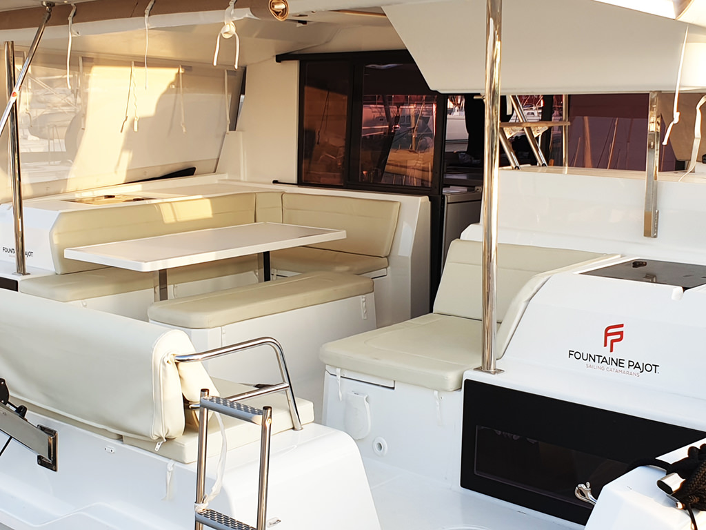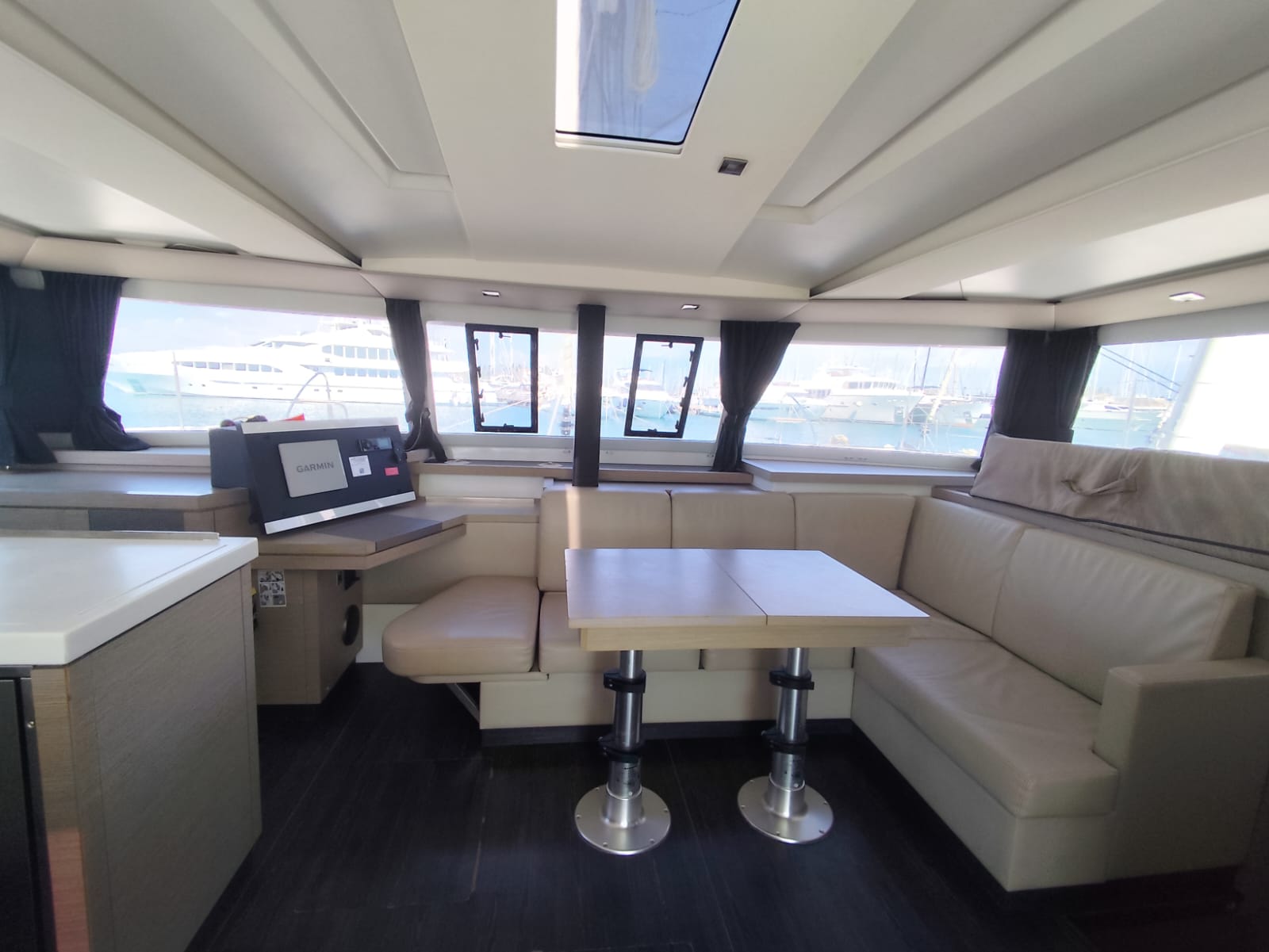 Full-Battened Main Sail, Roller Genoa, Lazy Jacks with Lazy Bag, Generator, Aircondition, watermaker, Cockpit table & cushions (with lounge deck), Electric windlass, Electric winch, Swimming ladder, Gas stove/oven, Refrigerator 130 lt, Fridge in cockpit