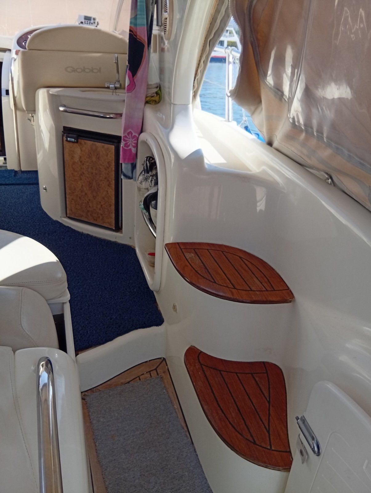 Engines 2x Volvo Penta 200hp with S-Drive, Generator Kohler 4,2kWa, electric wc, bimini, solar panels, A/C, generator, bowthruster, aluminiumm gangway, underwater lights