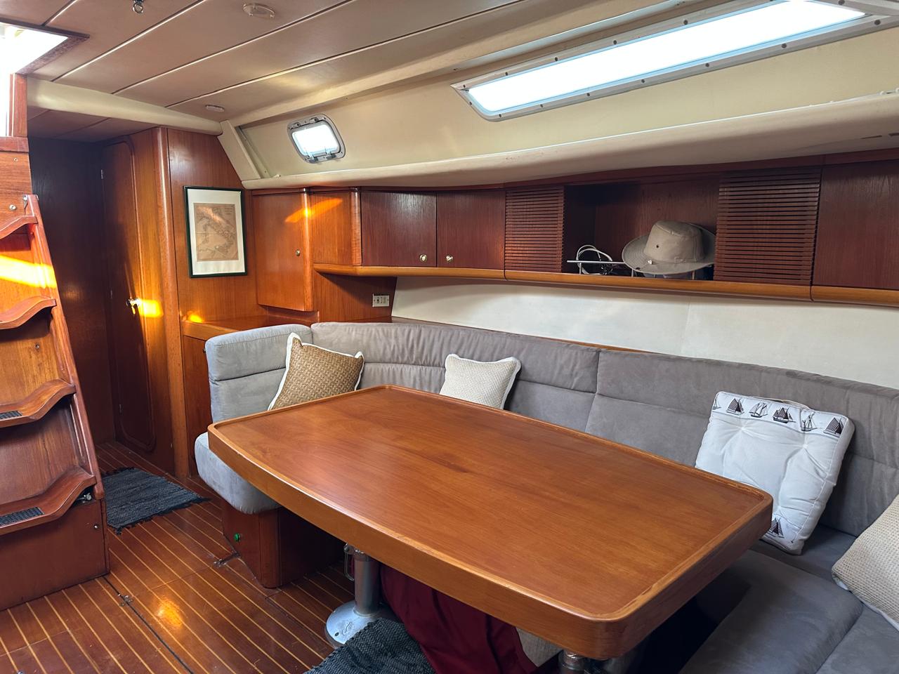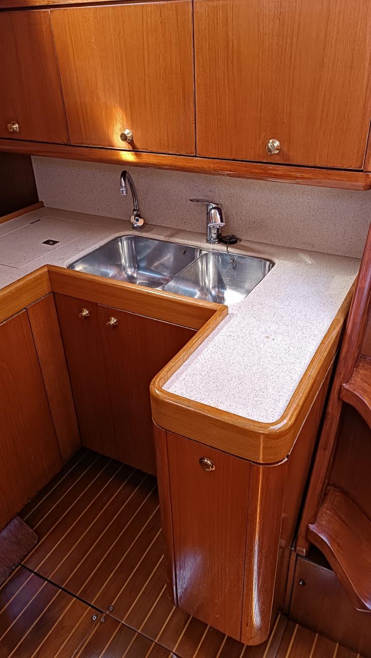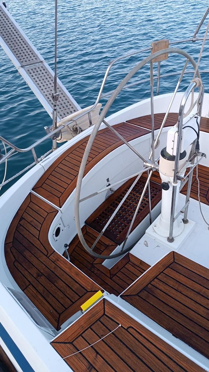 Reefing mainsail (2025), Reefing genoa (2015), Rigging 2010, Engine Yanmar 62 hp Fully Serviced, Full set of Raymarine instruments, Electric windlass Lofrans 1.500W, Aluminium Gangway, 2 x Lewmar Electric winches, Antiosmosis protection 2020, 3 – Blade folding propeller, new ropes 2024, spinnaker boom, cockpit table, new teak 10mm 2019 installed