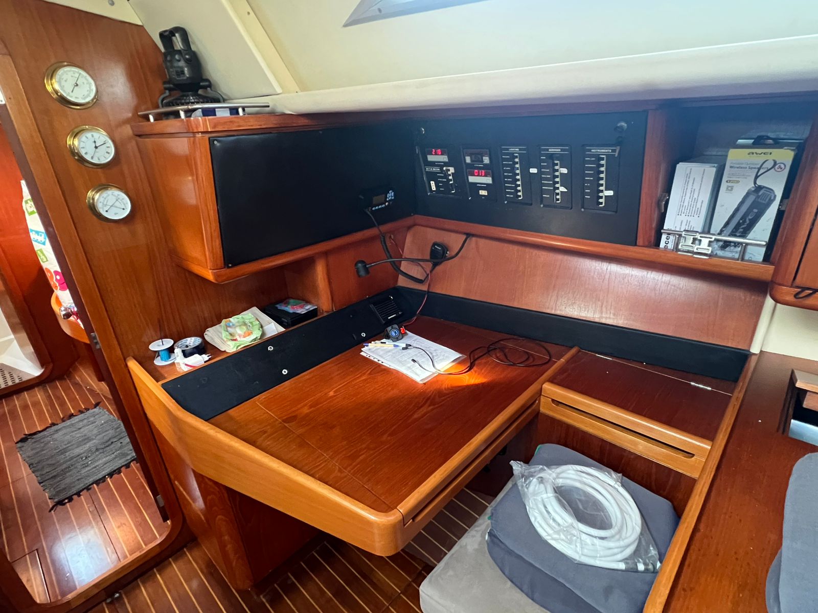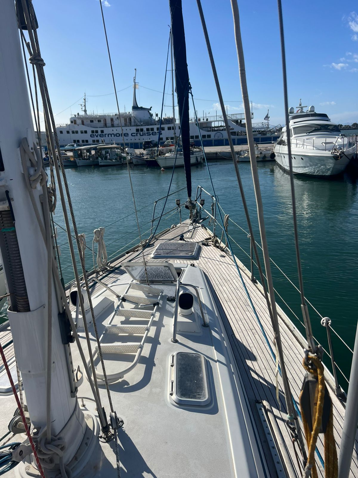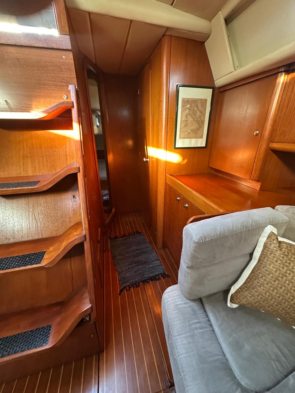 Reefing mainsail (2025), Reefing genoa (2015), Rigging 2010, Engine Yanmar 62 hp Fully Serviced, Full set of Raymarine instruments, Electric windlass Lofrans 1.500W, Aluminium Gangway, 2 x Lewmar Electric winches, Antiosmosis protection 2020, 3 – Blade folding propeller, new ropes 2024, spinnaker boom, cockpit table, new teak 10mm 2019 installed