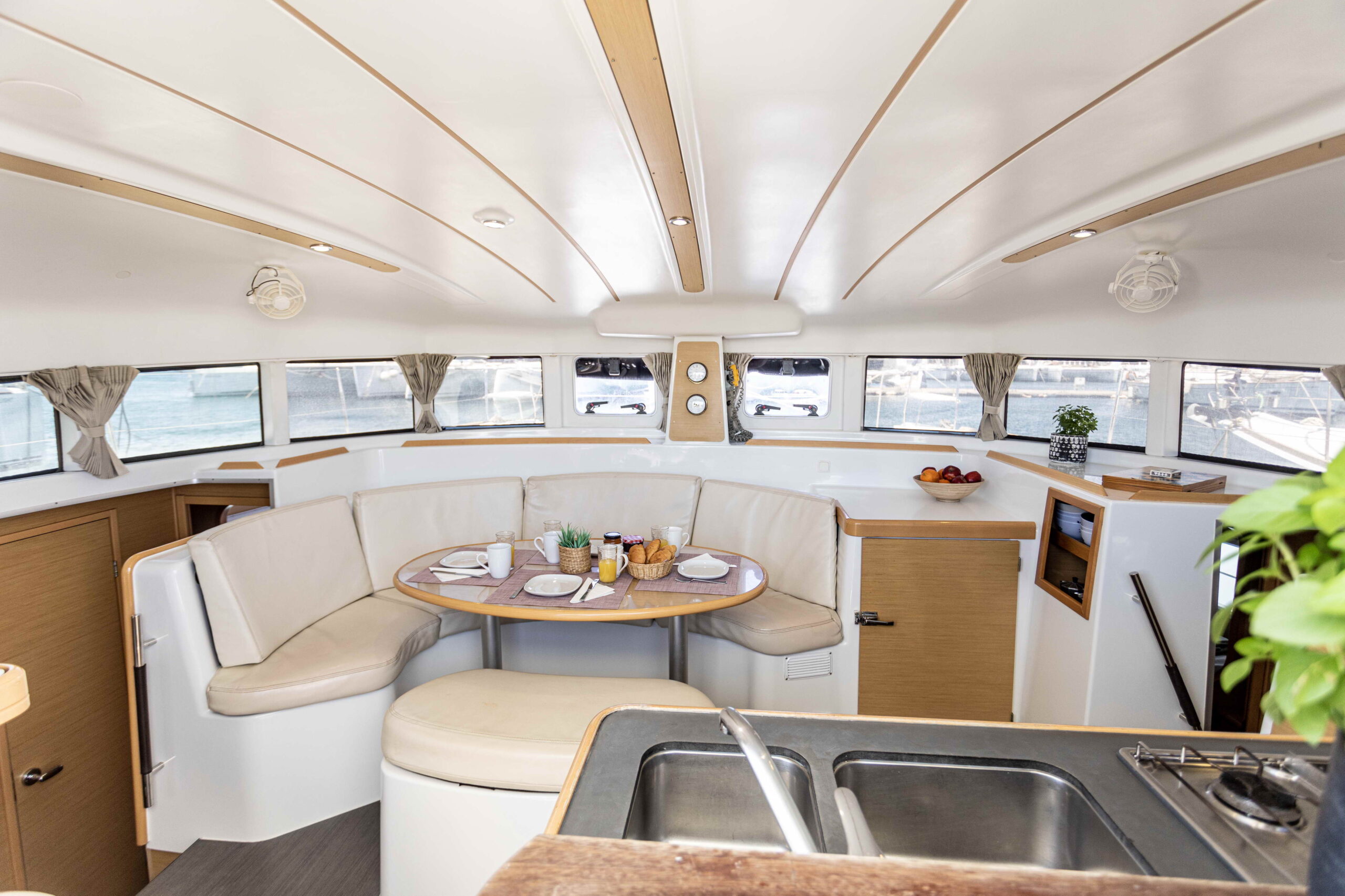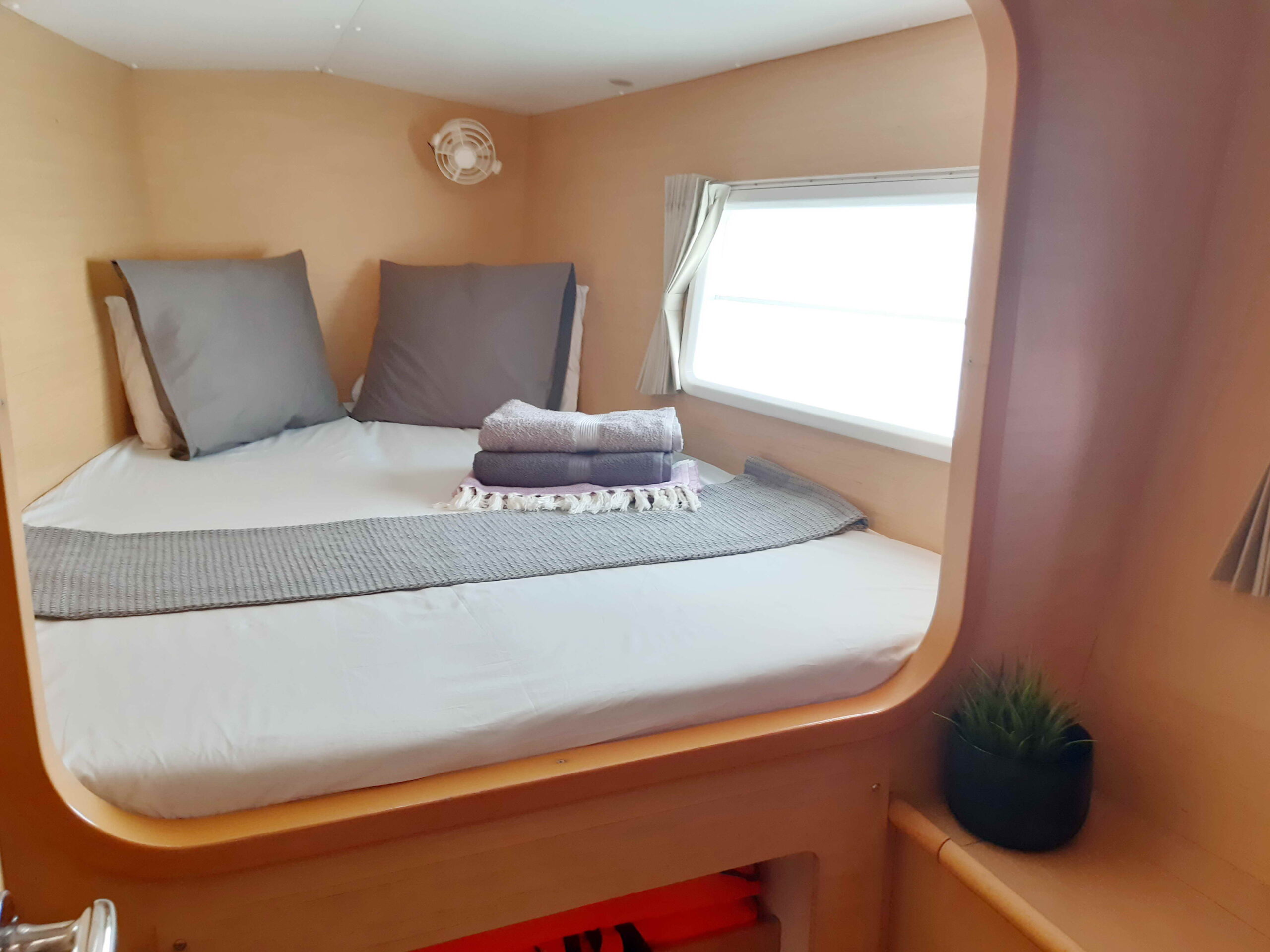 Fully Battened mainsail & Roller Genoa 2025, Engines 2 x Yanmar 28hp, Solar panels, Inverter, Full set of Raymarine instruments, Electric windlass Quick 1.500W, USB plugs in all cabins, Blue LED lights in cockpit