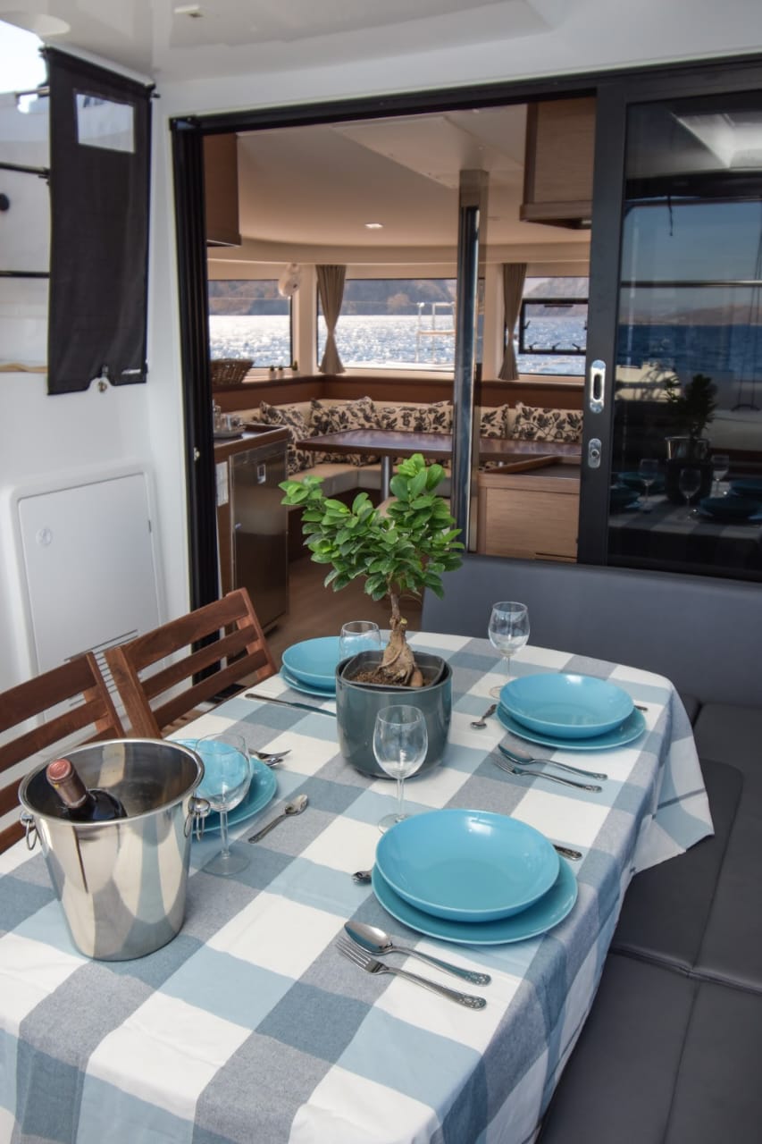 Fully Battened mainsail, Roller genoa, Engines 2 x Yanmar 57hp Saildrive, Full set of B&G instruments, Generator Coelmo, A/C Gree, cockpit table, cushions, Extra fridge