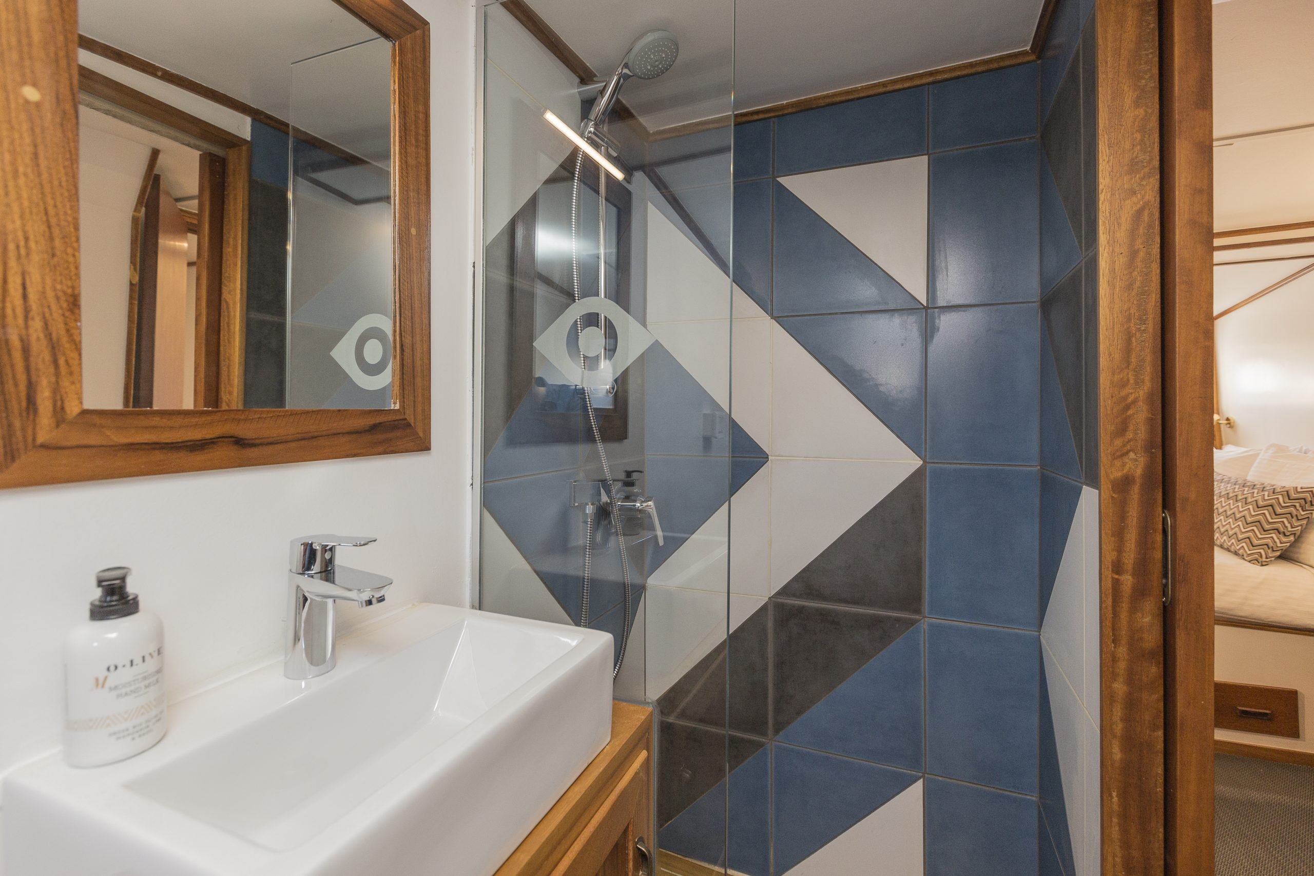 With four exquisitely appointed cabins, COSMOS offers bespoke comfort for up to 8 guests. Each cabin is thoughtfully designed to provide a serene retreat at sea, featuring plush COCO-Mat mattresses, ensuring restful nights rocked by the gentle waves.