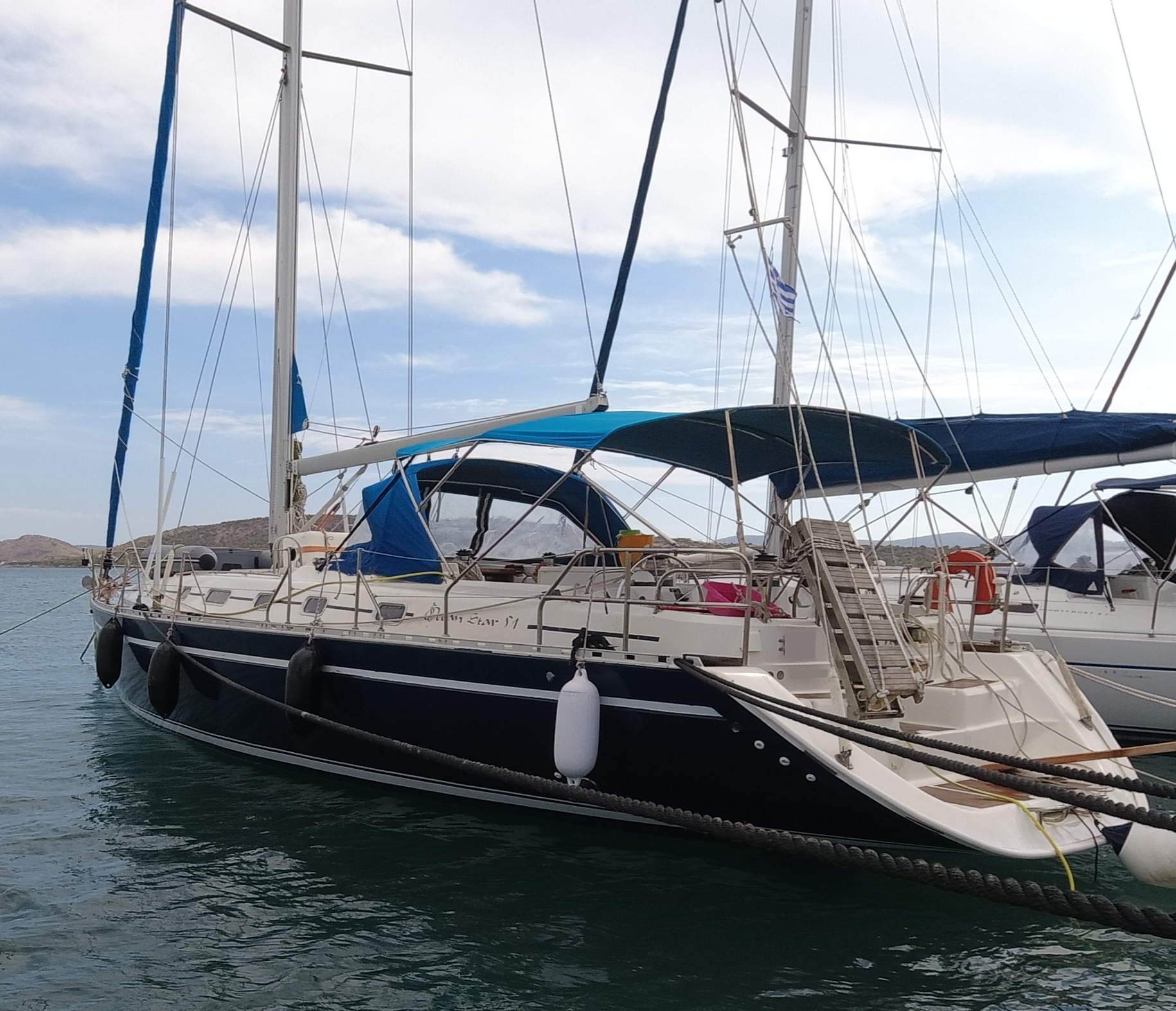 Furling mainsail (2023), Roller Genoa (2022), Engine Yanmar 92 hp, Full set of Garmin instruments, Electric windlass 1.000W, Bowthruster Vetus 1.200W, Dinghy 2.7m, Outboard Hidea 2.5 hp