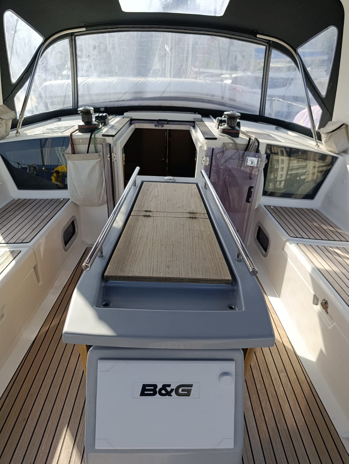 Fully Battened mainsail (2024), Roller Genoa (2024), Bimini & Sprayhood 2024, Full set of B&G Instruments, Fusion Bluetooth MP3 with cockpit speakers, Cockpit table with icebox, cockpit cushions, bathing platform, Anchor Windlass remote control on cockpit