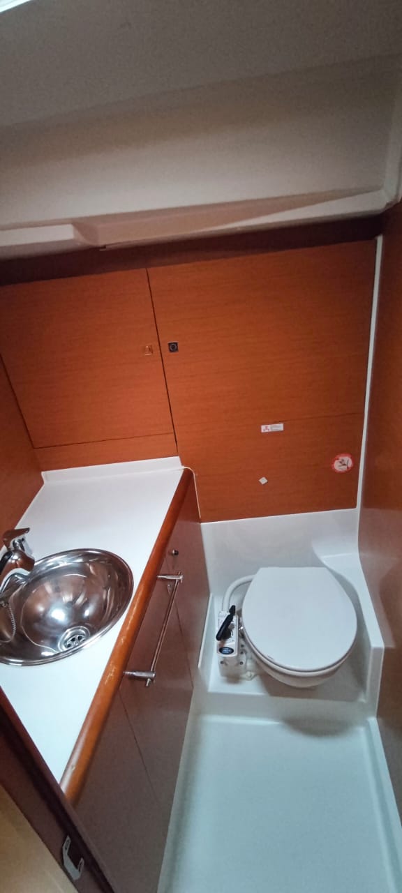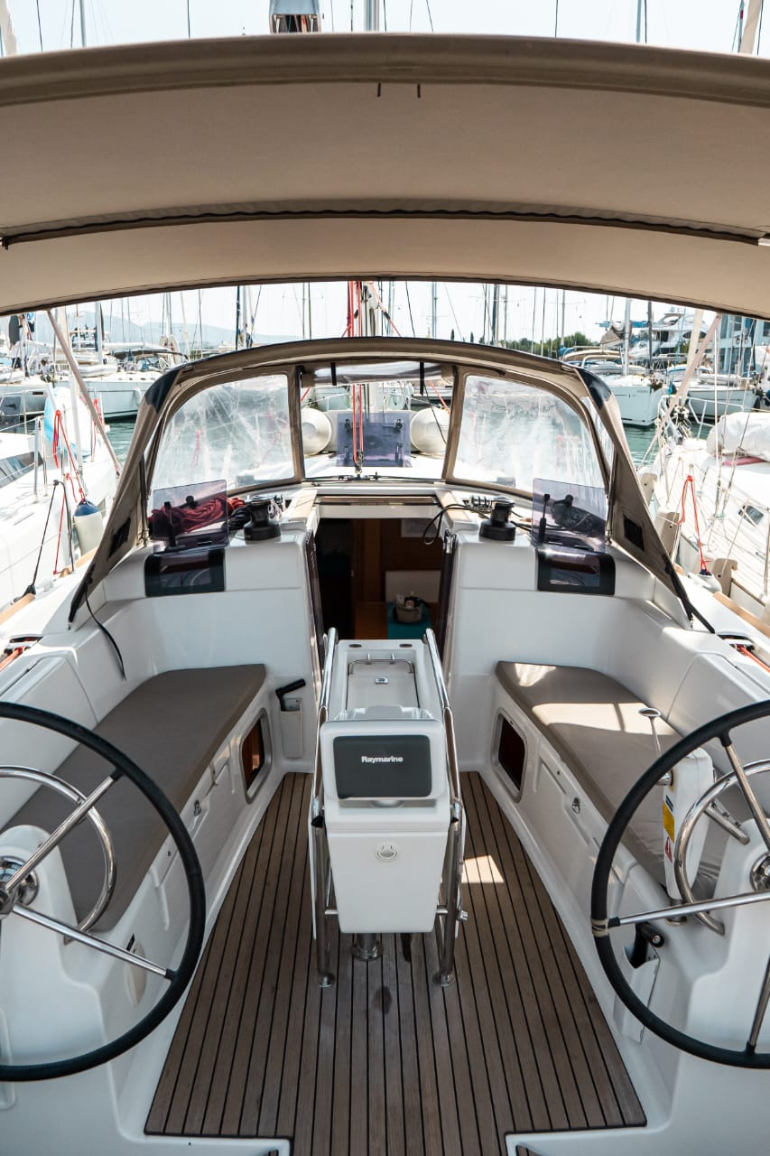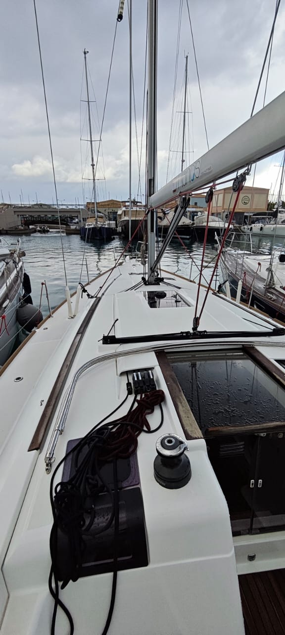 Furling mainsail & furling Genoa original with new sunscreen, Engine Yanmar 45hp, Full set of Raymarine instruments, Bowthruster, Bathing platform, Folding aluminium gangway, windlass control in cockpit, Delta anchor