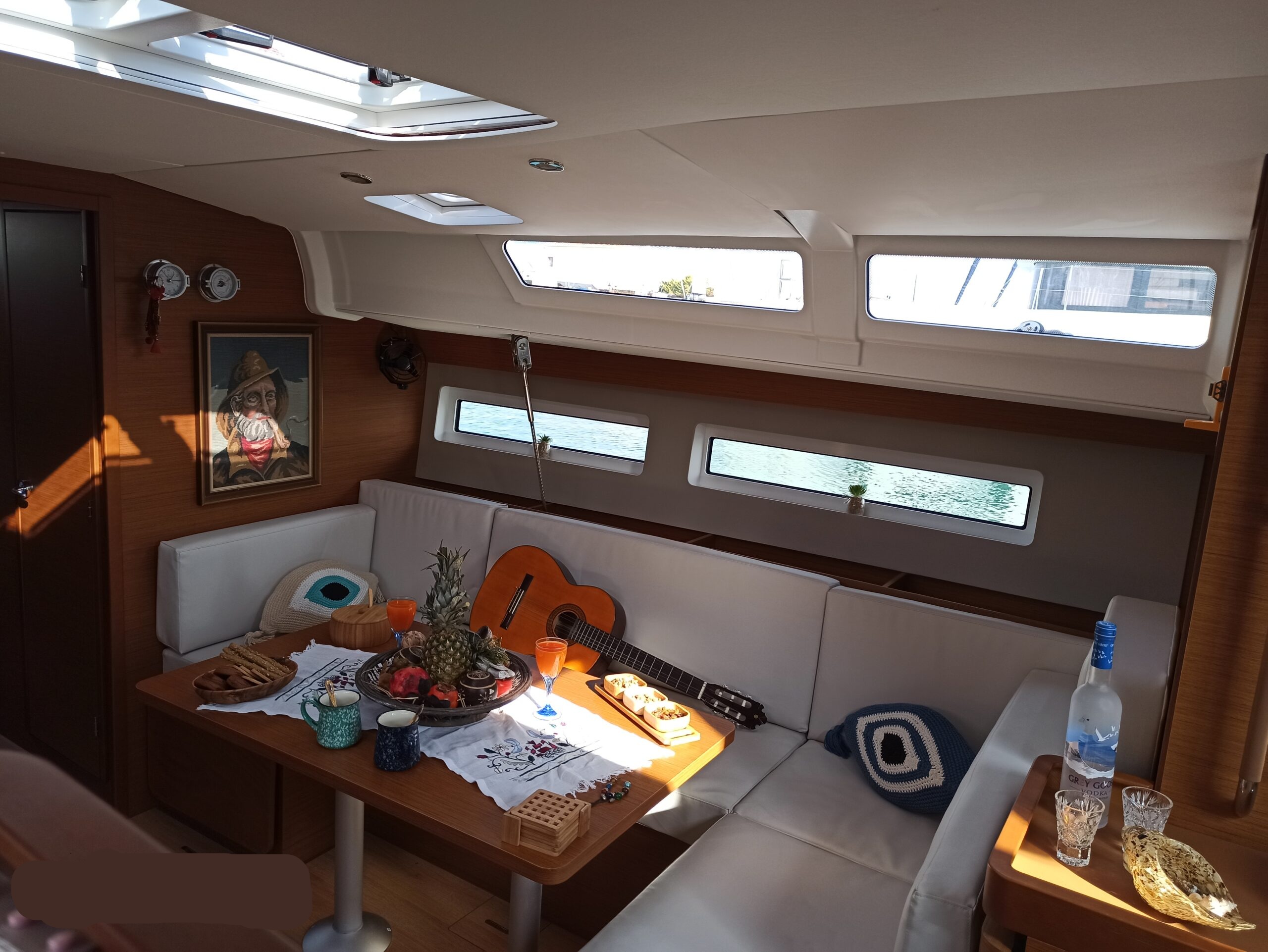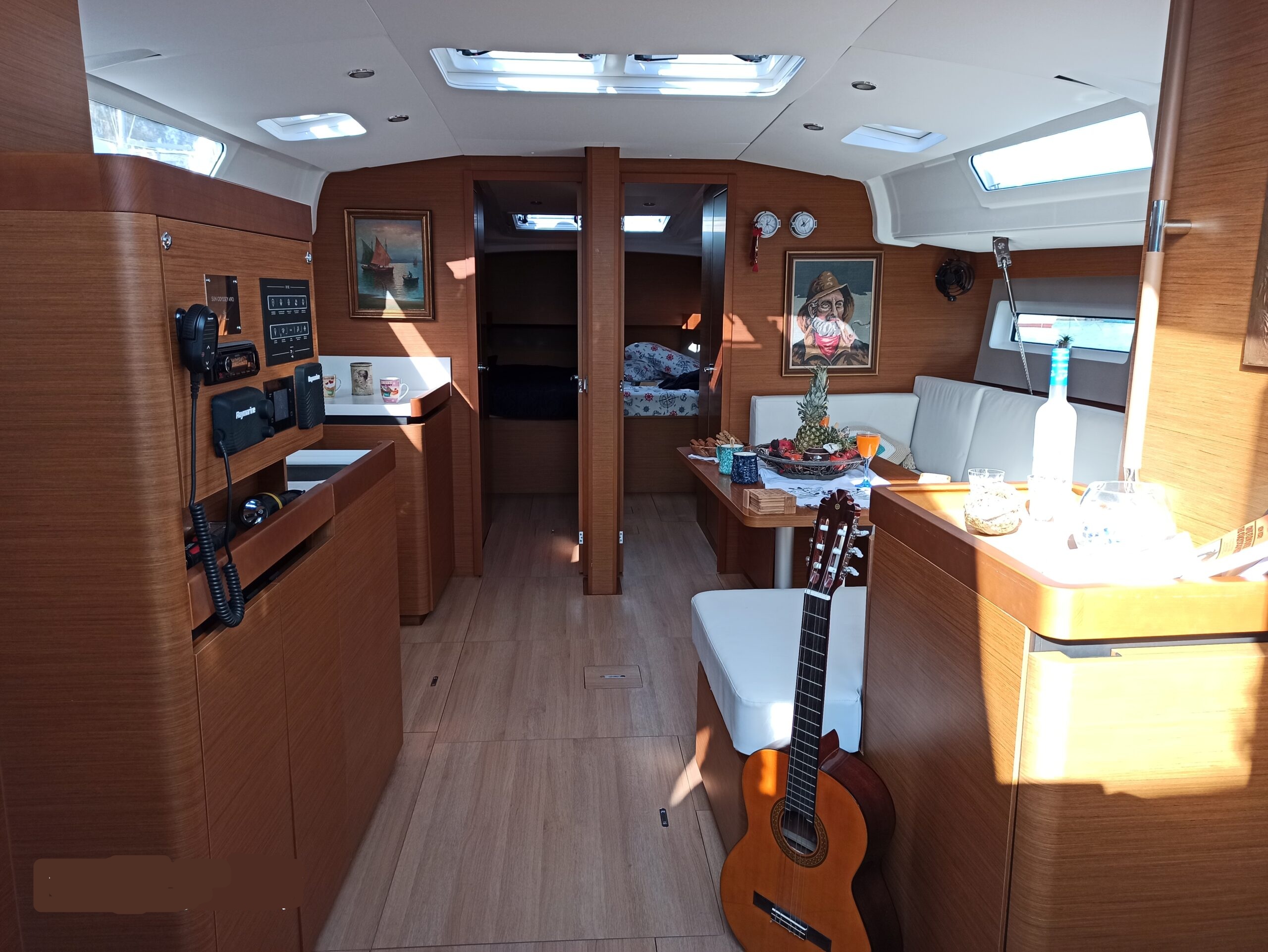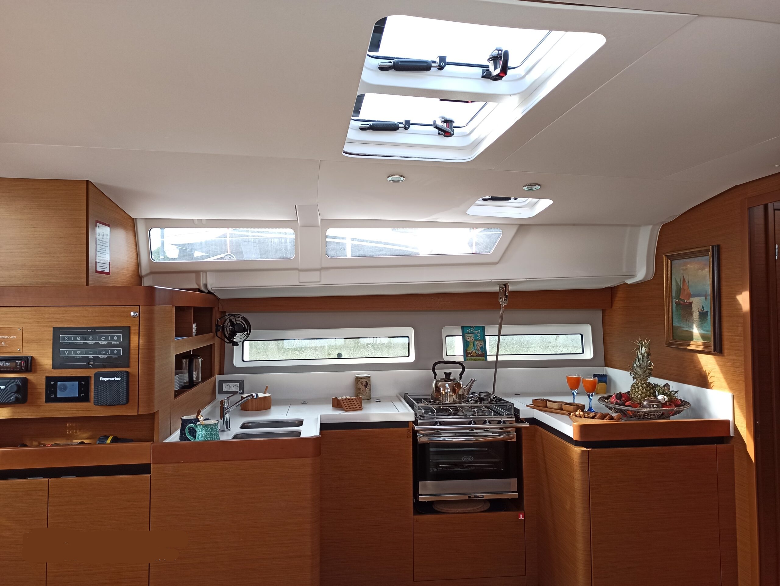 Battened mainsail (2020), Roller Genoa (2020), Engine Yanmar 80hp, Full set of Raymarine instruments, Cockpit table, Hob, Oven, Double Sink, front cabins convertible to 1